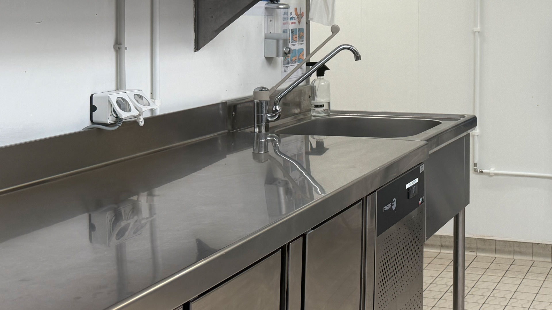 - Un soubassement réfrigéré positif 4 portes GN 1/1 FAGOR pour la préparation en ligne froide.