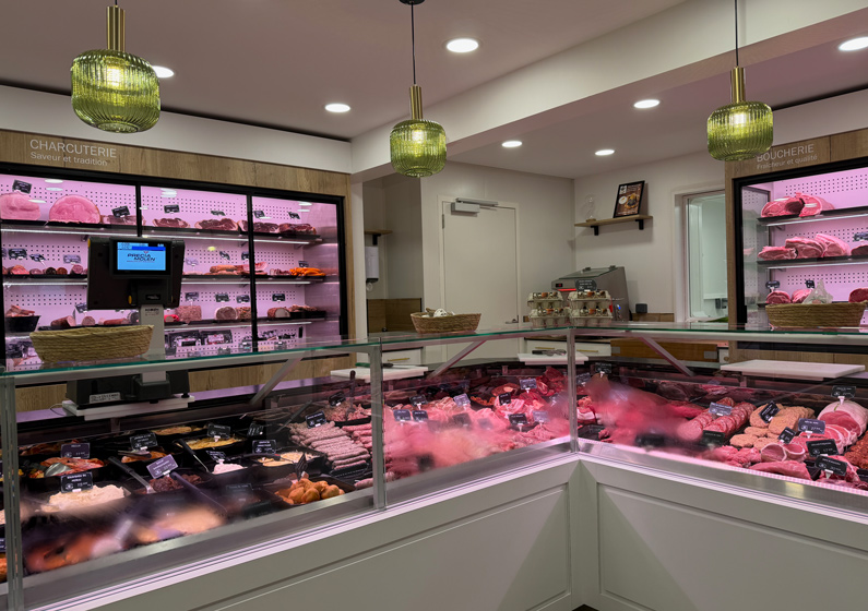 Cette réalisation illustre notre savoir-faire dans l’installation d’équipements pour boucherie, charcuterie et commerce de métier de bouche. Grâce à une étude personnalisée et à du matériel de qualité, la boucherie bénéficie aujourd’hui d’un outil de travail moderne et performant au service d’une offre fondée sur la fraîcheur des produits et le circuit court.