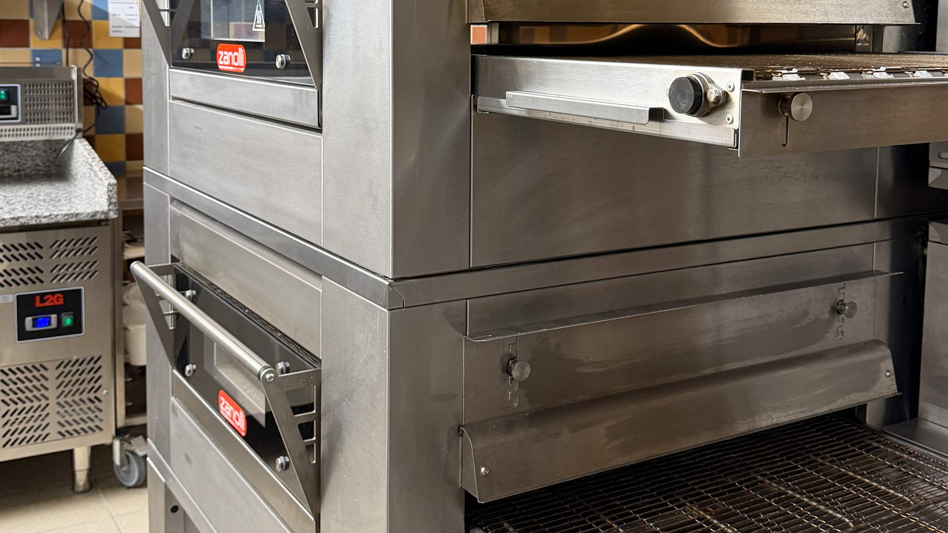 Quant au pôle cuisson, il est équipé d’un cuiseur automatique sur pieds, de fours à pizza convoyeur électrique ZANOLLI et une formeuse à pizza PIZZARELLA intégrée dans un meuble inox.